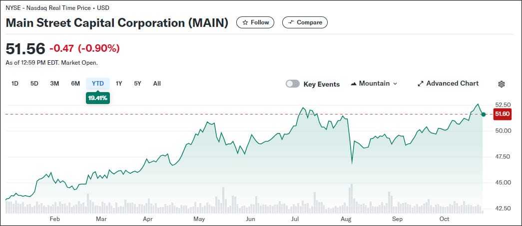 Die Aktie von Main Street Capital befindet sich aktuell fast auf einem Allzeithoch: